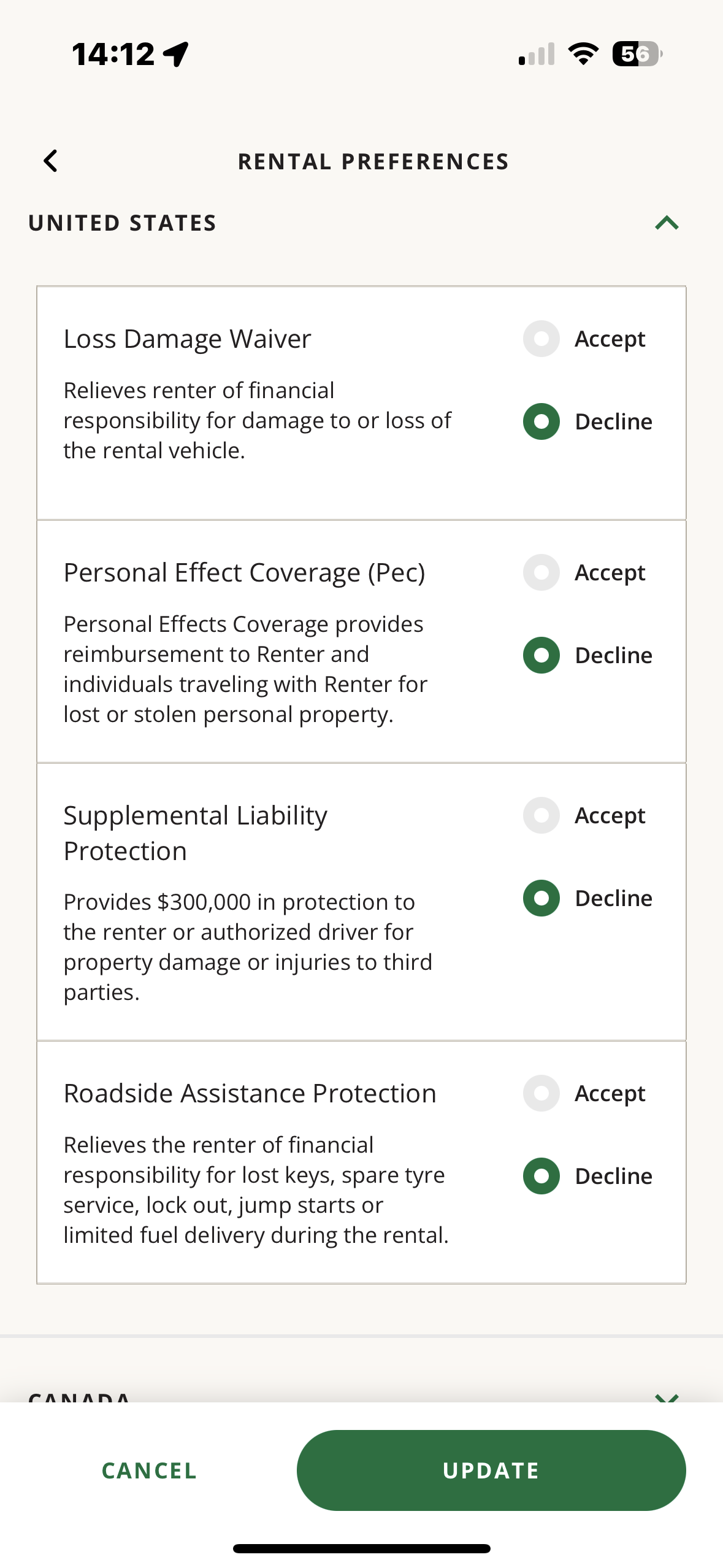 Heel gek. Voor volgend jaar SLC krijg ik geen verzekeringen als ik executive area boek. Meeste auto's in die categorie ook niet maar Intermediate SUV, die ook in executive area valt, heeft weer wel verzekeringen inbegrepen. Ook een Standard SUV die weer niet in executive area valt heeft wel alle verzekeringen inbegrepen. Dat maakt de Standard SUV een stuk goedkoper dan de meeste auto's uit de executive area.