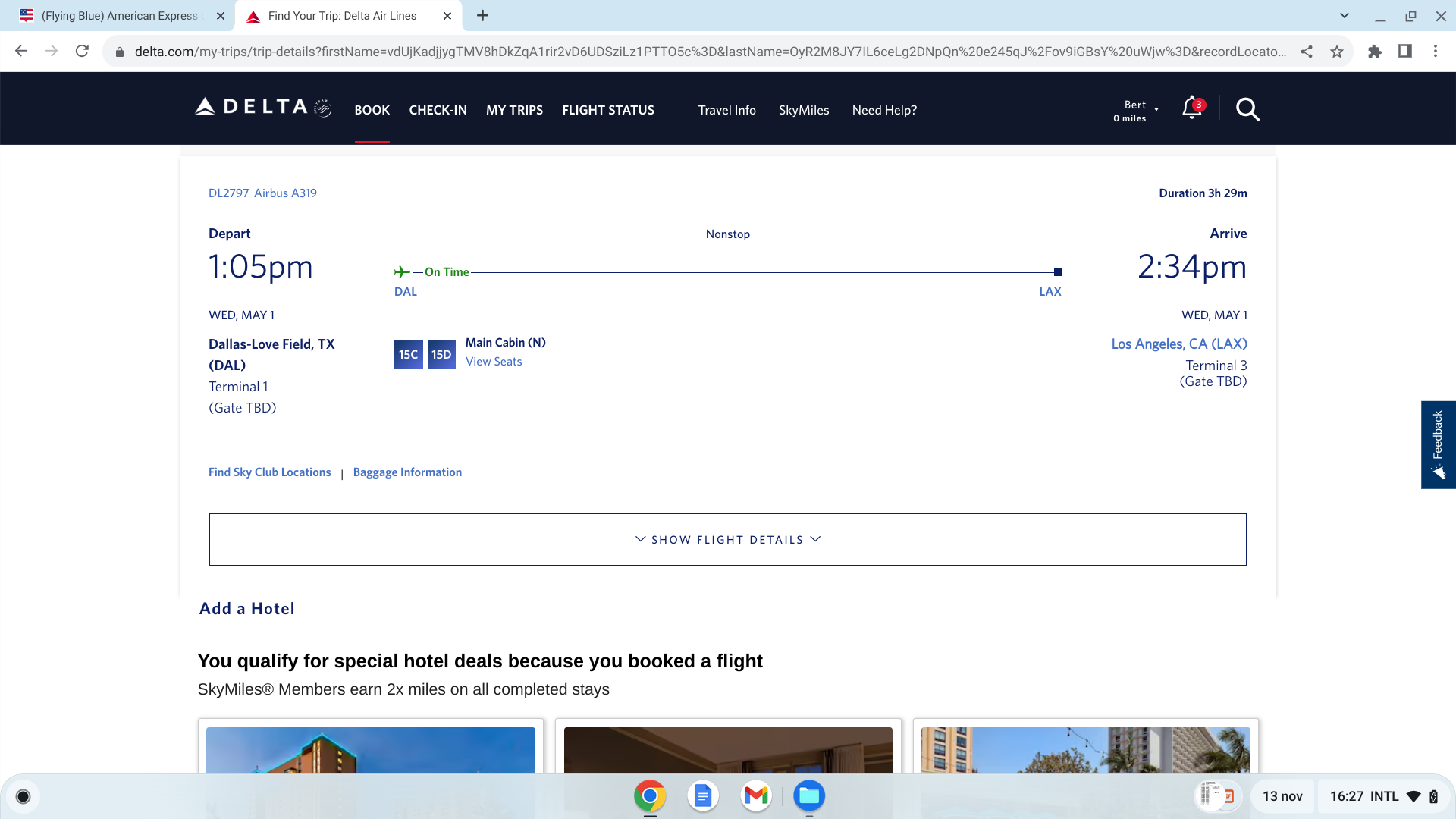 Een Delta vlucht met Miles ultra light geboekt bij KLM geeft mij wel gratis stoelen
