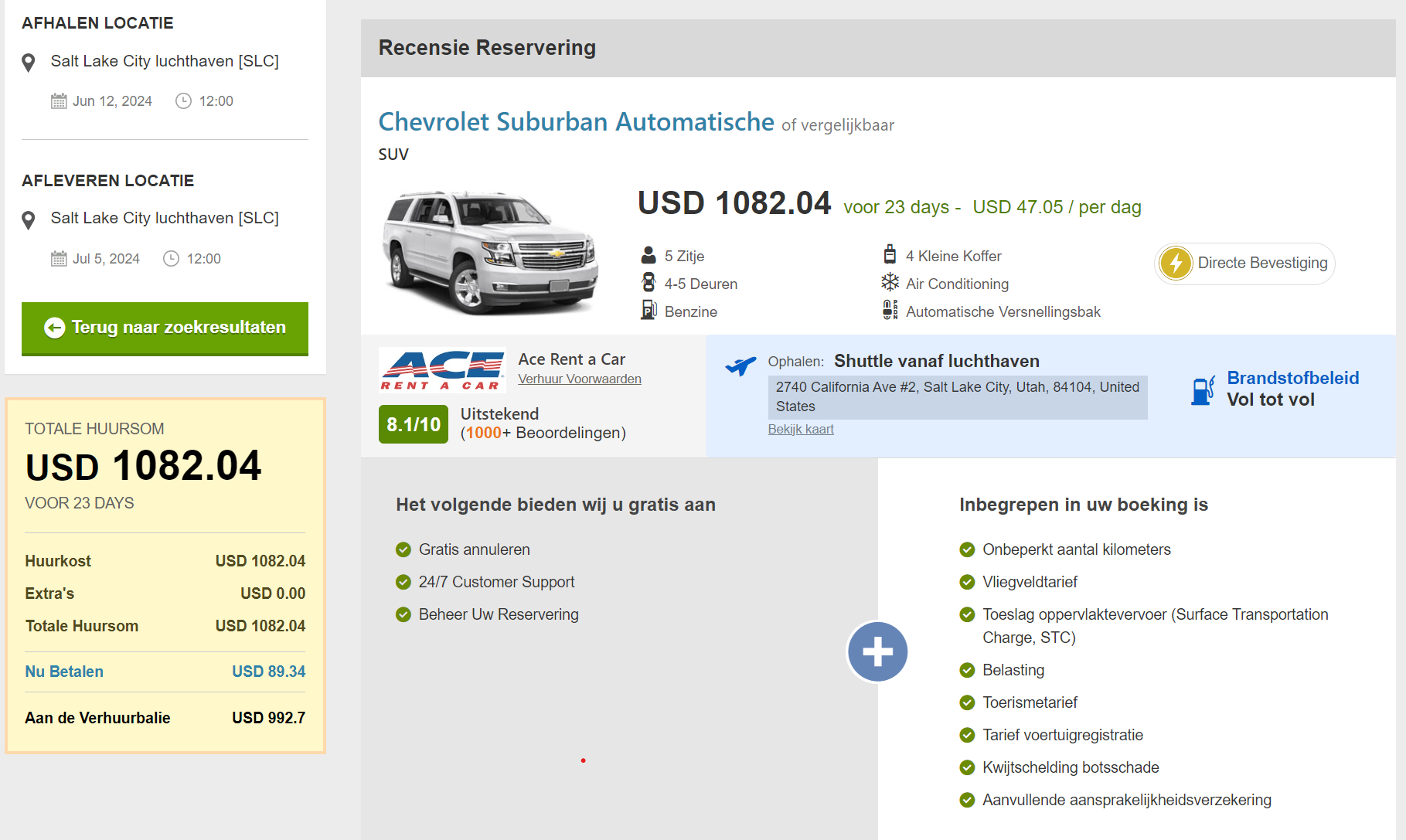Ik heb trouwens al een boeking Hertz klasse C voor $1134 en back up Alamo.de standard SUV $1409. Dus is echt een soort back up - back up boeking