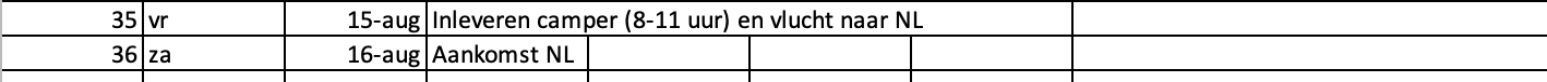 35. Inleveren camper en vlucht terug naar NL