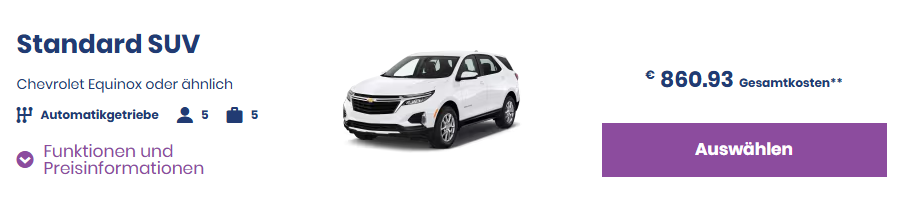 Blijf het spannend vinden? Kijk dan eens op Alamo.DE en gebruik code THPPS15. Vind dit een nette prijs voor een standaard SUV voor de door jou genoemde periode.