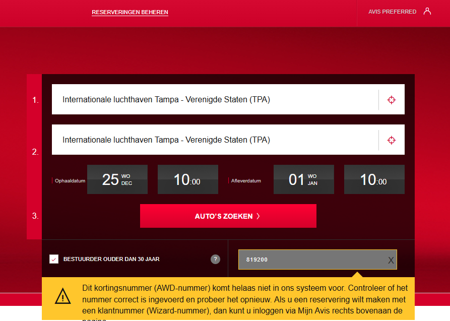 Bij mij doet Avis.nl ook lastig. Herkent mijn login niet, en Los Angeles vindt hij niet. LAX evenmin. Tot ik eens Angeles probeerde en jawel hoor, dan komt er wat