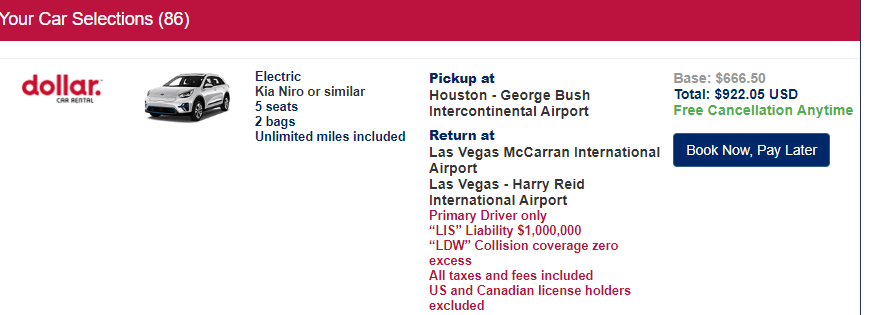 Avis.nl Ford Edge Las Vegas over 1,5 week was ineens goedkoper (met code 819200).