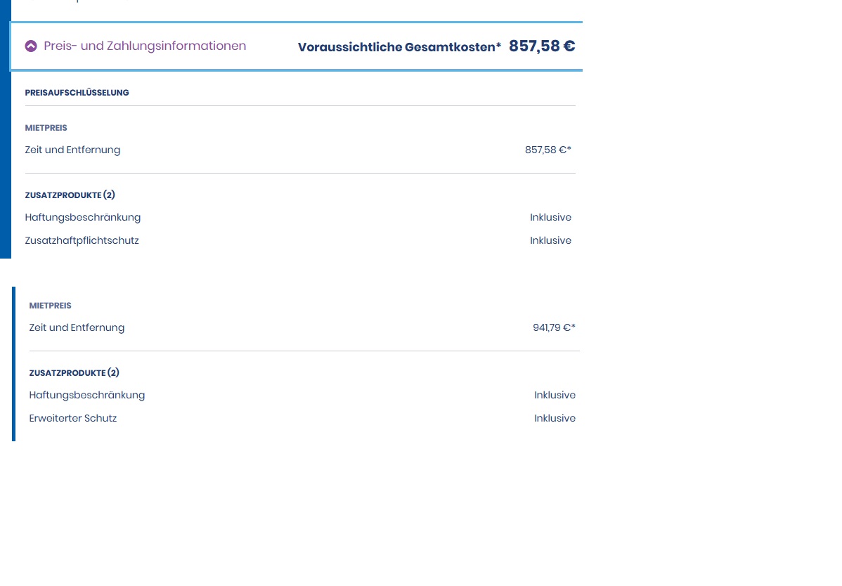 Je moet toch bij beiden kunnen zien hoe hoog de zusatzhaftpflicht is b.v.