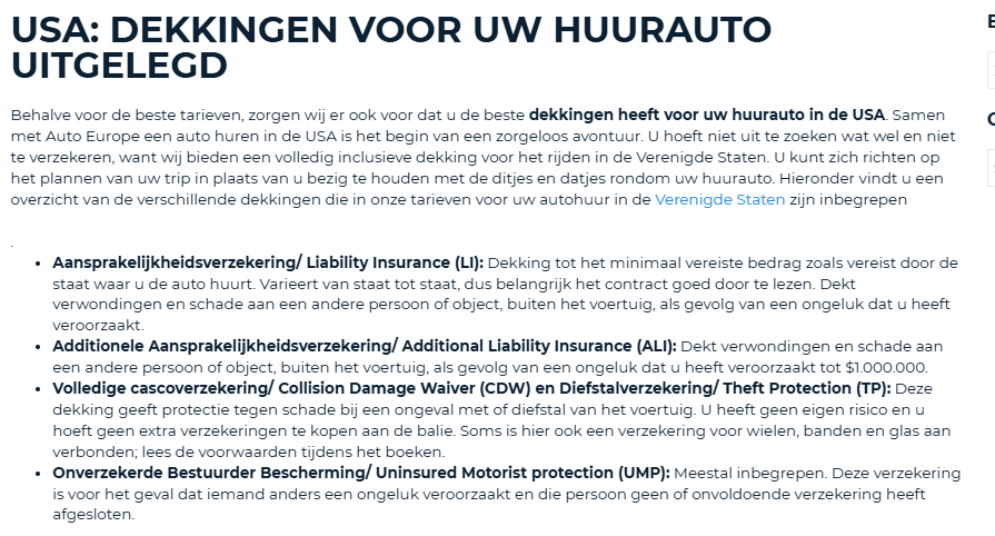 Ik heb het al eerder gezegd maar let bij autoeurope op de aansprakelijkheidsverzekering. Bij sommige verhuurders staat er geen bedrag en volgens de support daar is het dan de wettelijke per staat wat zo laag kan zijn als 10000