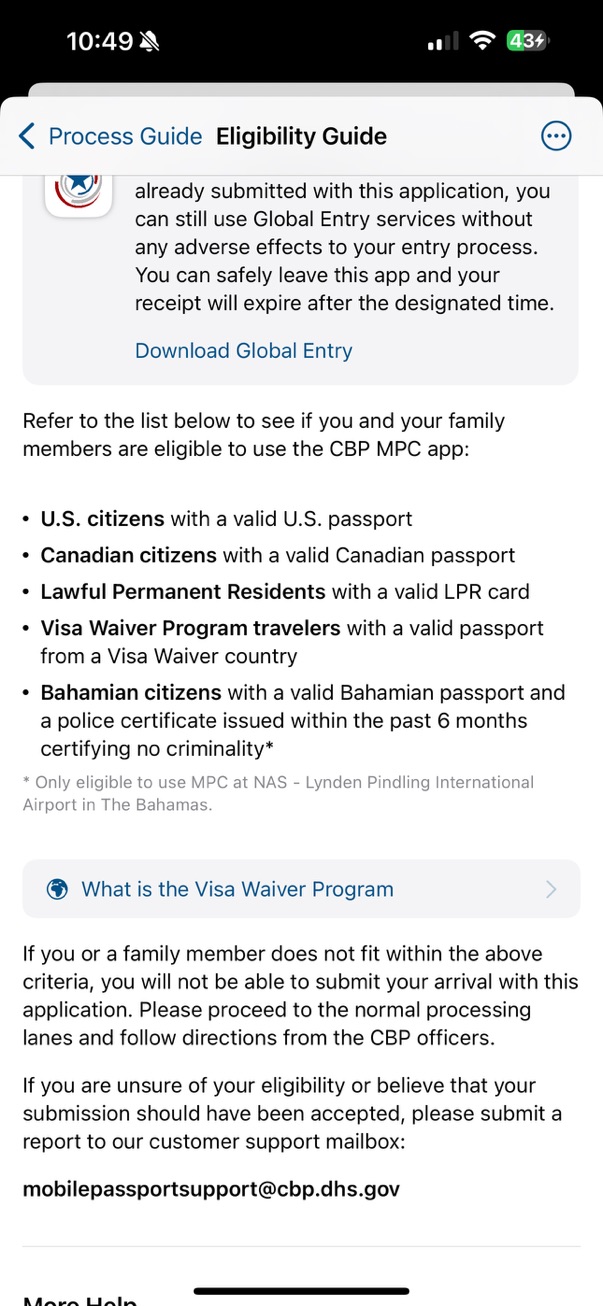 Re: Mobile Passport Control