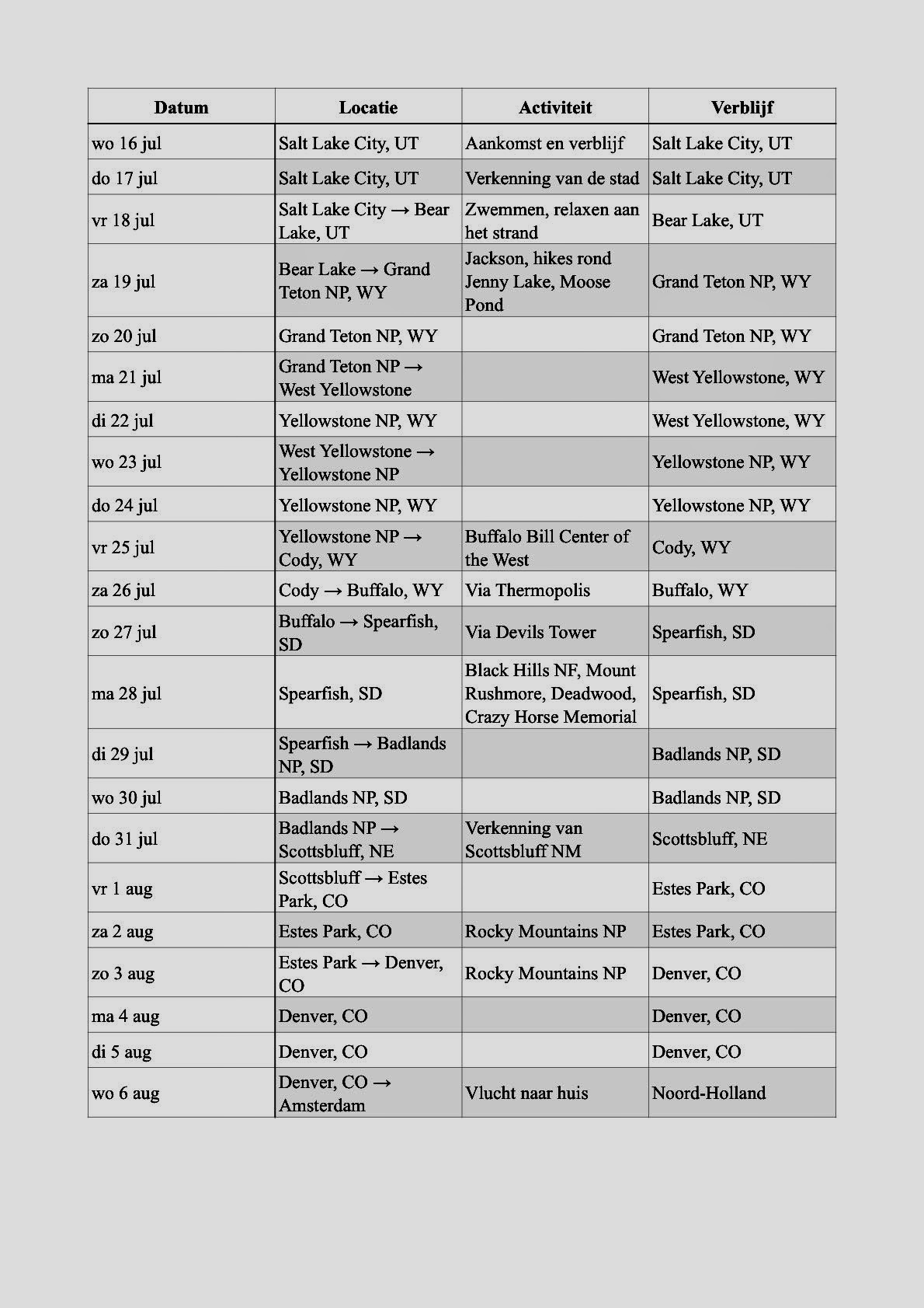 Eerder gaf je aan dat je wat rustiger wilt doen, snap ik, maar ik zou die 3 nachten Denver heroverwegen.