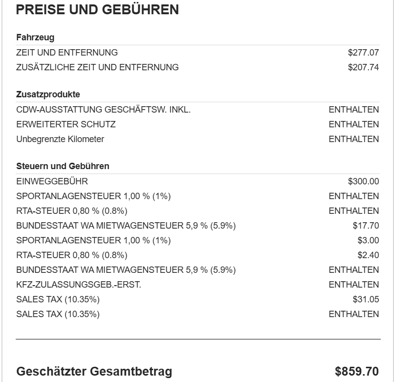 Als ik een proefboeking maak op alamo.de en ik doe als voorbeeld even ophalen op Las Vegas en inleveren in Miami dan zie ik bij mij wel heel duidelijk bij STEUERN, ZUSCHLÄGE UND GEBÜHREN een drop off fee staan.
