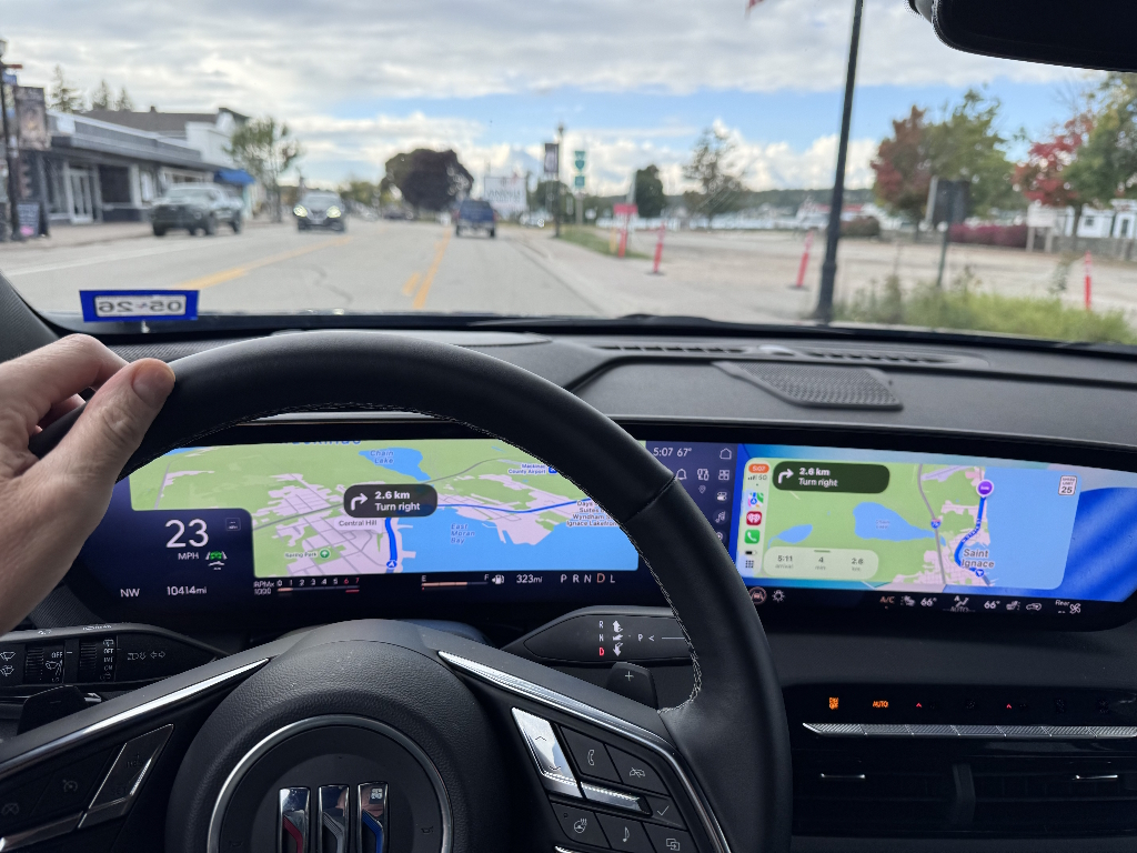 Mijn naam stond niet op het bord bij Hertz in DTW maar met President's Circle kon zelf kiezen uit de PC rij en heb ruim de tijd genomen een auto uit te zoeken. Het aanbod was in principe ruim genoeg maar er stonden vooral kleinere auto's waarbij de Jeep Compass ruim aanwezig was. Even getwijfeld of ik die zou nemen. Toen werd er een Buick Enclave in de rij gezet. Verreweg de grootste SUV in de PC op dat moment. Dus daar gelijk naartoe gewandeld. Een grote 7-seater die voor mij alleen meer dan voldoende zou wezen. Door de 3e rij achterin neer te klappen kreeg je een zee van ruimte achterin. De auto was van alle gemakken voorzien en het grote digitale dashboard was erg mooi. AppleCarplay was draadloos dus dat is erg fijn zonder snoeren te werken. Nadeel vond ik dat de telefoon erg warm werd bij het draadloos opladen. De auto was verder ook voorzien van SiriusXM, dus overal muziek. Voor de bagage dus ruimte in overvloed achterin. Erg prettig was het extra opbergvlak in de vloer achterin. Daar konden de extra flessen en blikjes water en frisdrank rechtop in staan.