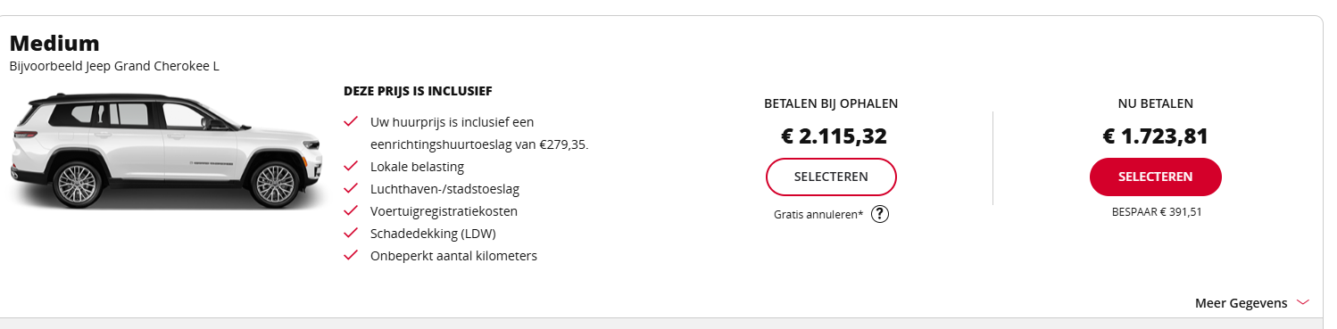 Wat we nu als 'voordeligste' optie zien is deze bij Avis.be:
