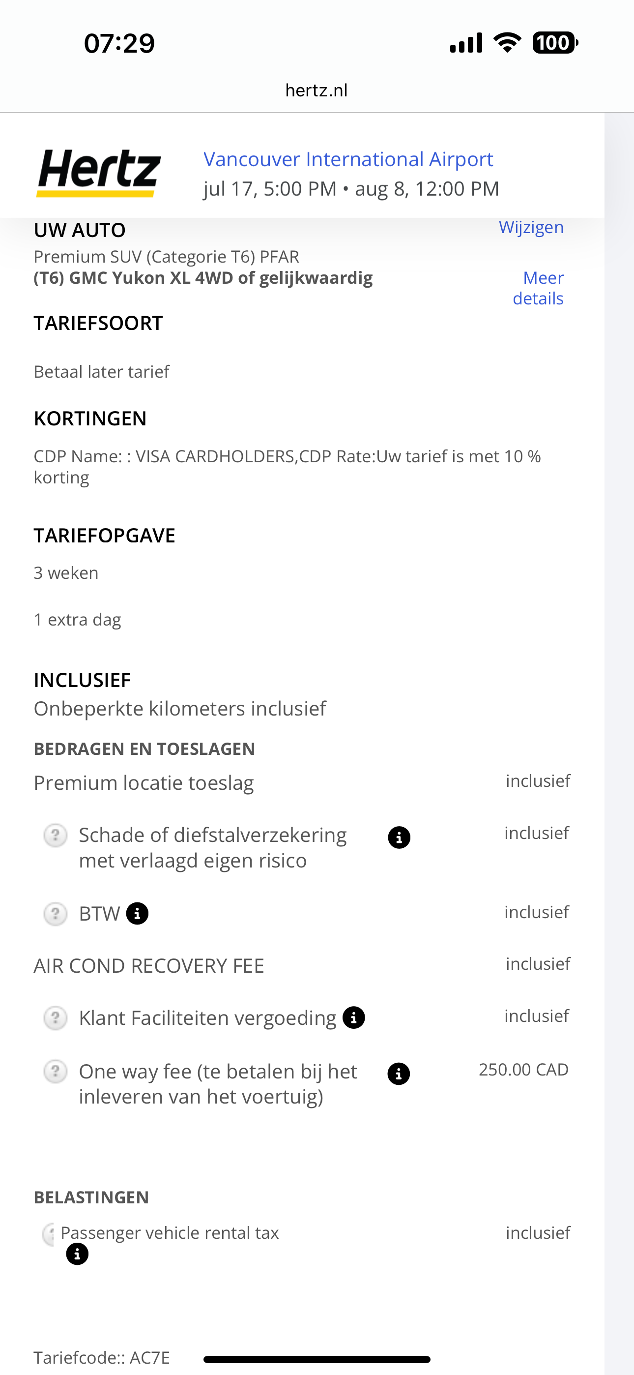 Goede morgen, zojuist reservering gemaakt bij Hertz, eerste keer Hertz en en eerste keer Canada, zouden jullie kunnen meekijken of hier nou echt alles in zit?