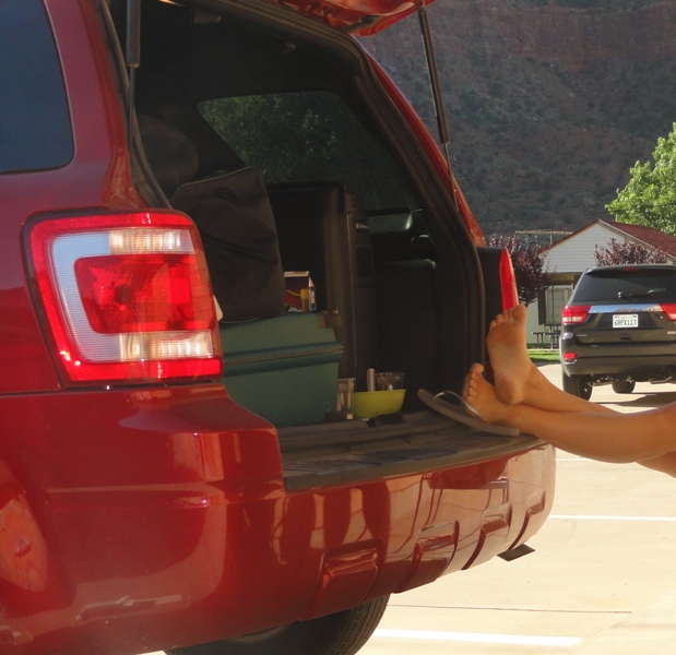 Wij hadden 2 koffers mee en daarnaast nog 2 reiszakken. In de koffer was er plaats voor 2 valiezen, 1 reiszak en een vrij grote frigobox. De andere reiszak belandde op de achterbank, samen met de rugzak.