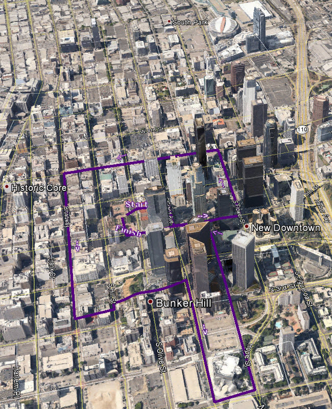 (of??? Vanaf Pershing Square via 5th St, Grand Ave, 6th en Main Sts tot -->)