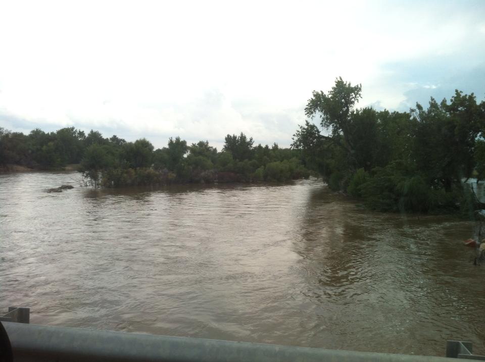 Dit is dus normaal drie rijbanen noord/drie rijbanen zuid, en is nu dus overstroomd door de Big Thompson River, wat normaal een klein stroompje is. Hierdoor is Longmont nu volledig van de wereld afgesloten (net zoals Estes Park and Lyons dat eerder al waren), en is het nu bijzonder moeilijk om in Loveland of Fort Collins te komen. De snelweg is afgesloten ter hoogte van waar wij wonen (ik kan vanuit ons huis de snelweg zien, en zie de politieauto's staan die de snelweg afzetten), helemaal tot aan Fort Collins nu: een stuk van ongeveer 75 kilometer.