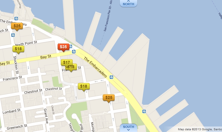 Dit zouden dan de parkings moeten zijn in de buurt van Pier 39. De eerste dag gaan we sowieso eens met de BART gaan, mss dat we op de tweede dag dan wel met de auto gaan. Alvast bedankt voor de info, Cees!