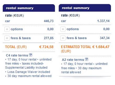 Denk dan dat ik toch maar ga voor Budget en Dollar zoals ik op de vorige pagina schreef, want dat is dan blijkbaar het goedkoopst op het moment.