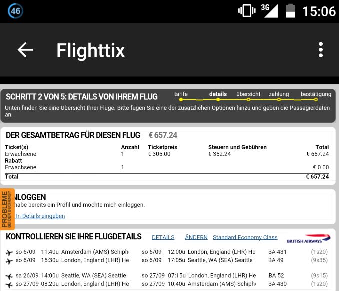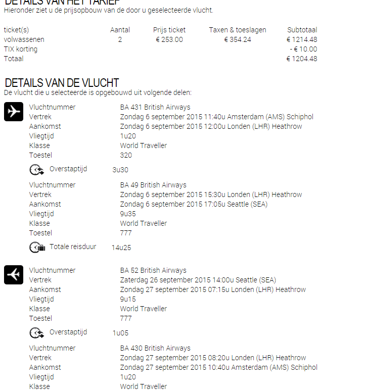 Heb inmiddels geboekt. Voor 652 euro pp via Tix met BA.