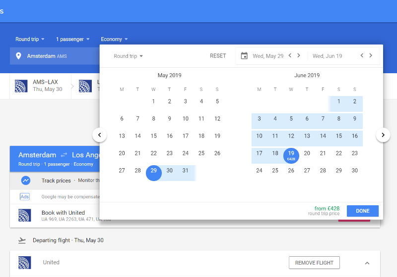 Dankjewel om snel even te zoeken! Welke data heb je juist ingevoerd?Ik weet niet waar je zoekt, maar een snelle search op Google flights levert mij prijzen van 430 euro (restricted, 510 voor het normale tarief) op bij United, al dan niet in combinatie met LH, voor AMS-LAX retour in mei.