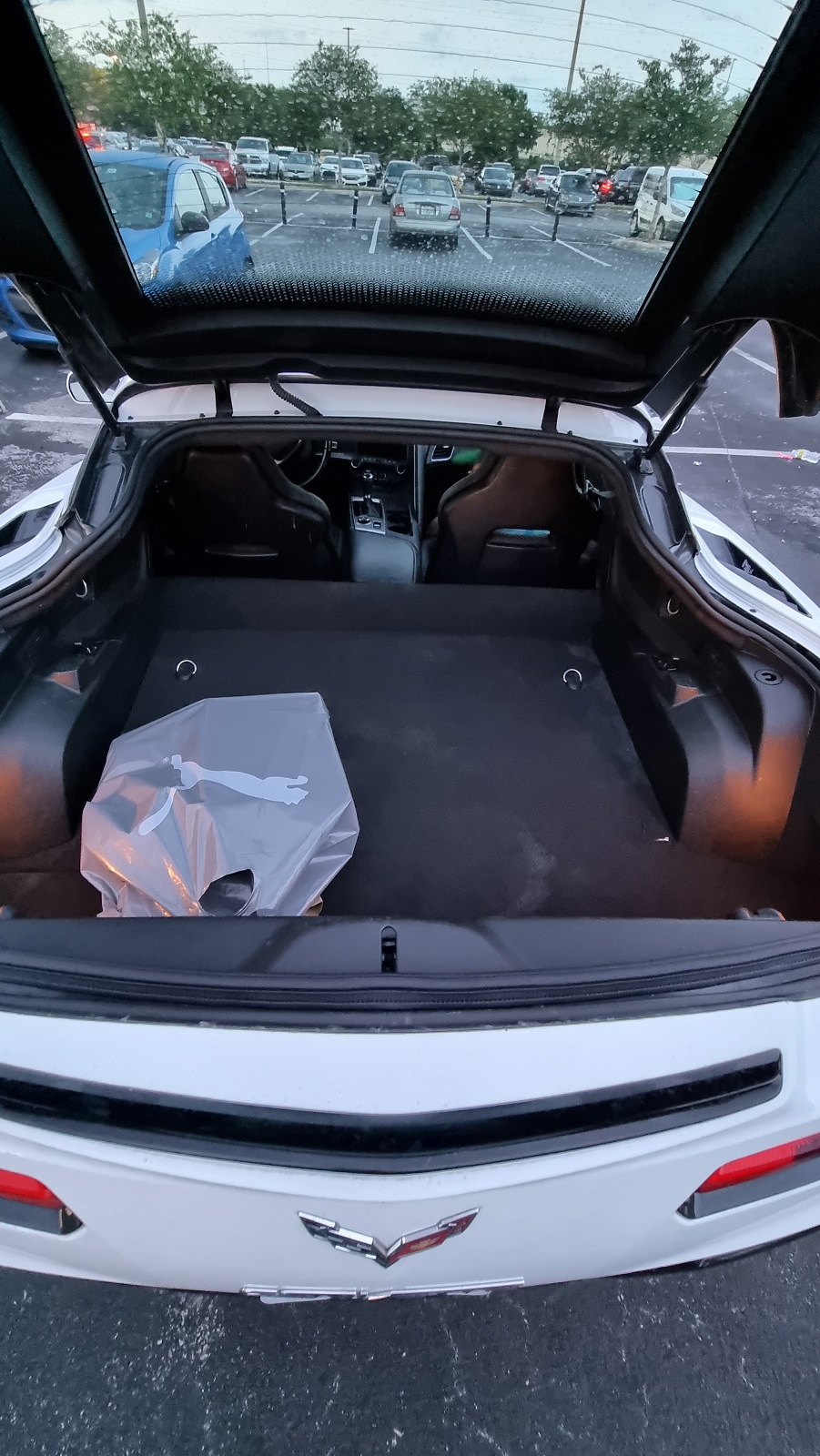 Foto + event. foto van kofferbakinhoud: Geen foto, maar kofferbak was groot genoeg voor twee grote koffers + twee kleine koffers en dan nog wat losse tasjes. We konden al onze spullen erin kwijt zonder dat je er in het passagiersgedeelte wat van zag en dat gaf ons een veilig gevoel. Dat was ook de reden waarom we niet voor de upgrade hebben gekozen. Jeep Wranger is een heel leuke auto maar heeft geen gesloten koffergedeelte.