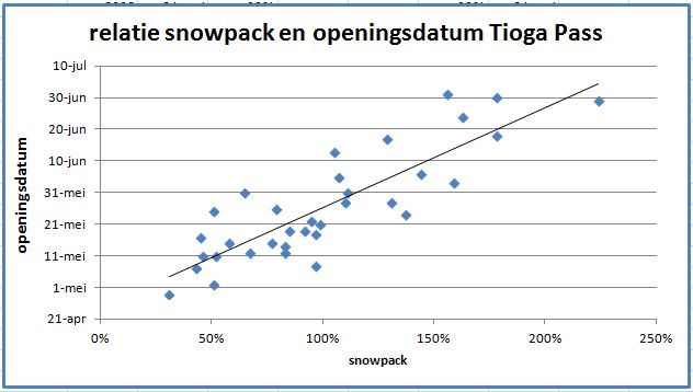 Ik heb eens een grafiek gemaakt met de relatie tussen snowpack en openingsdatum en de afgelopen jaren heb ik aan de hand daarvan de opening redelijk kunnen voorspellen.