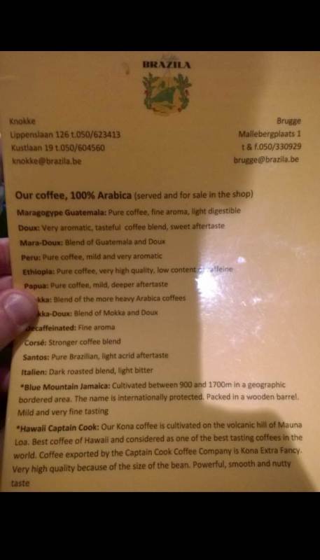 Wij zijn er toen (enkele maanden na het bericht) eens geweest (Brugge) maar de Kona koffie was al een tijd op, dan meer Peruaanse koffie meegedaan en gebak gegeten.